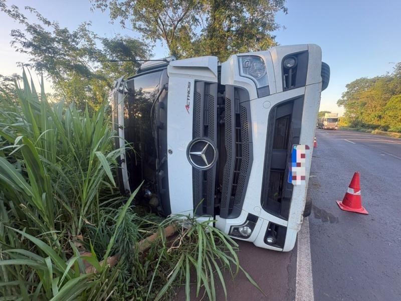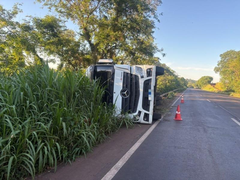 Conforme apurado no local, uma carreta bitrem seguia no sentido Guaíra para Mercedes, quando acabou tombando na região da Sanga Mate, à 3 km da cidade de Mercedes.