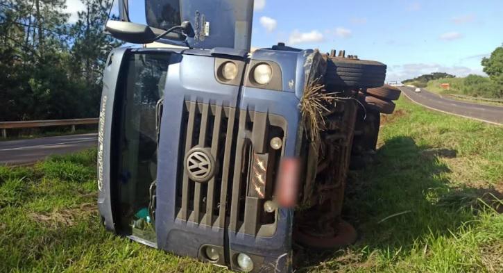 Carreta tombou na BR 467 no fim da manhã desta quarta-feira (8), em Cascavel.