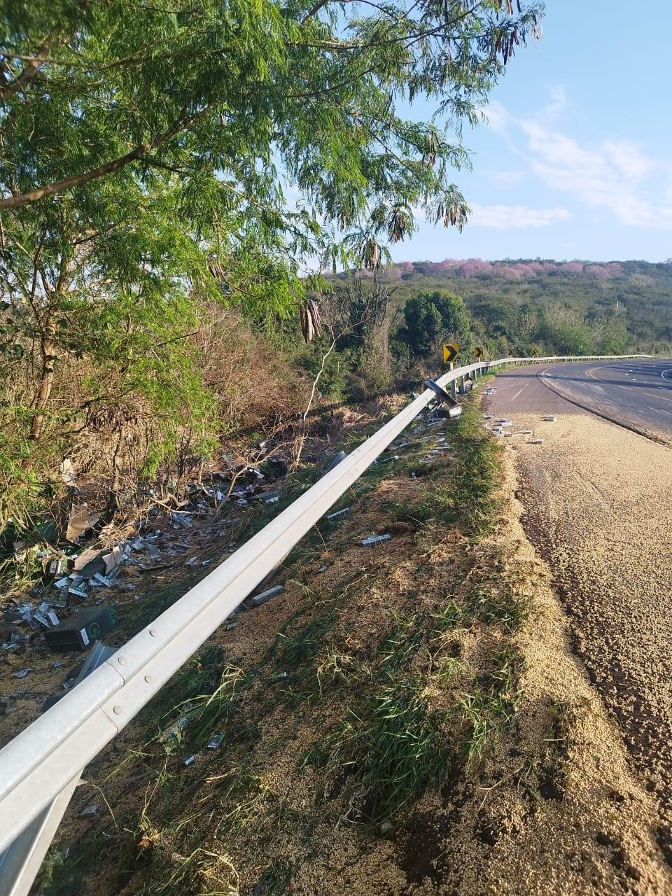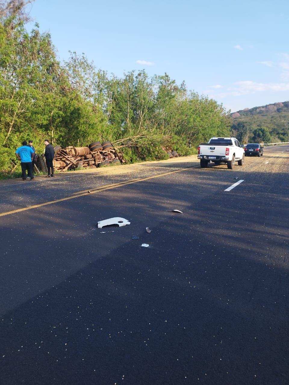 Na manhã desta quinta-feira (21), uma carreta tombou no acostamento da BR-163, na descida da Serra do Sabiazinho, próximo à pedreira. O acidente ocorreu logo após o radar e deixou o trânsito parcialmente interditado no trecho entre Marechal Cândido Rondon e Guaíra.