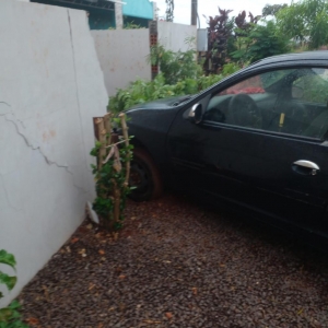 Segundo as informações que o Portal teve acesso, O condutor perdeu o controle da direção do carro vindo a colidir no muro da residência, não houve feridos.