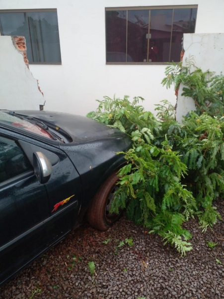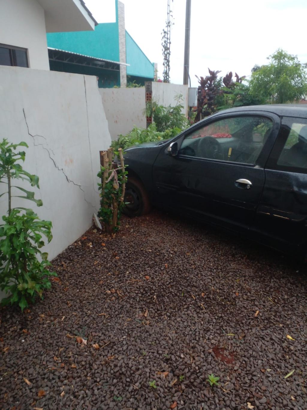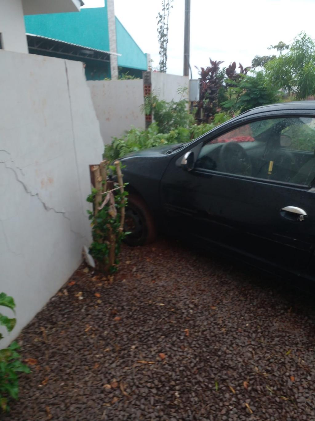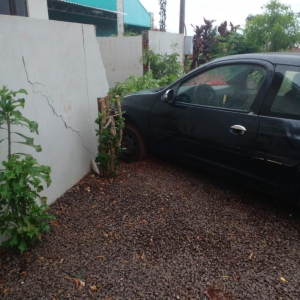 Um veículo com placas de Toledo, colidiu contra um muro da uma residência localizada não Loteamento Vip na rua Otto Augusto Schmidt esquina com a Ubiretama em Nova Santa Rosa, na manhã de hoje, domingo.