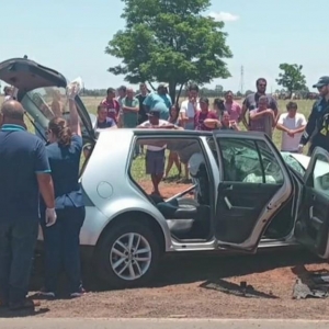 Uma criança de 11 anos, que estava no carro, ficou presa às ferragens e foi levada de helicóptero a um hospital de Paranavaí. O motorista também foi levado ao hospital em estado grave, segundo a PRE.