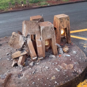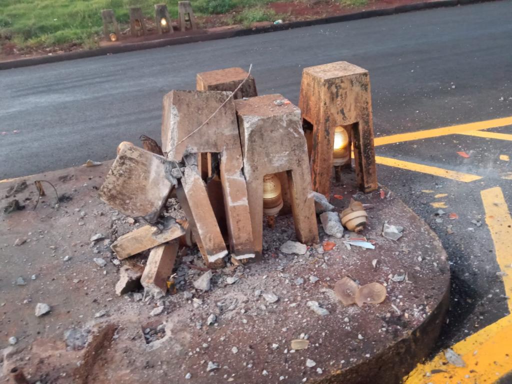 Na noite desta quinta-feira uma condutora de um veículo colidiu contra uma estrutura de concreto que serve como sinalizador durante a noite no canteiro das avenidas na saída de Nova Santa Rosa para Marechal Rondon, prolongamento da avenida Santo Cristo.