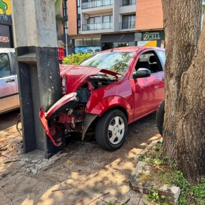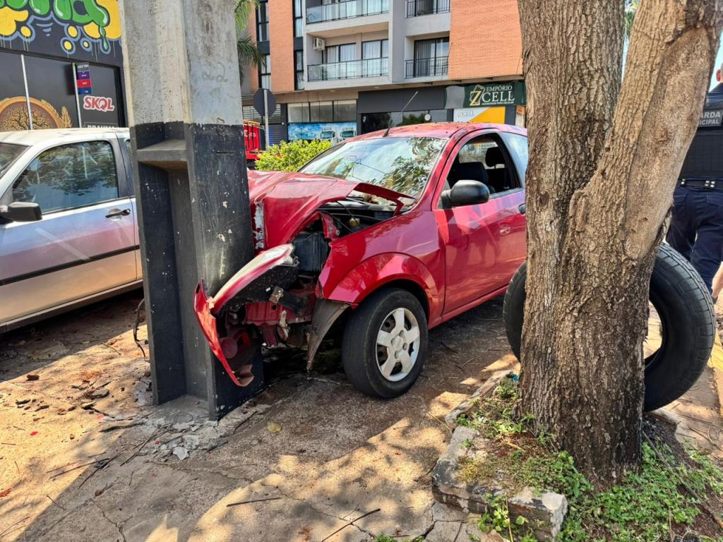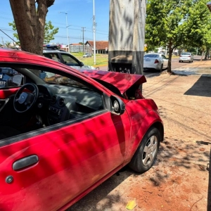 Um motorista ficou ferido neste domingo após perder o controle do carro e bater contra um poste na Avenida Maripá, em Toledo. O impacto deixou a frente do veículo bastante danificada, embora a estrutura do poste não tenha sido comprometida.