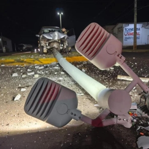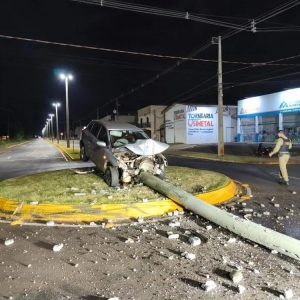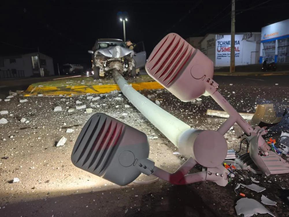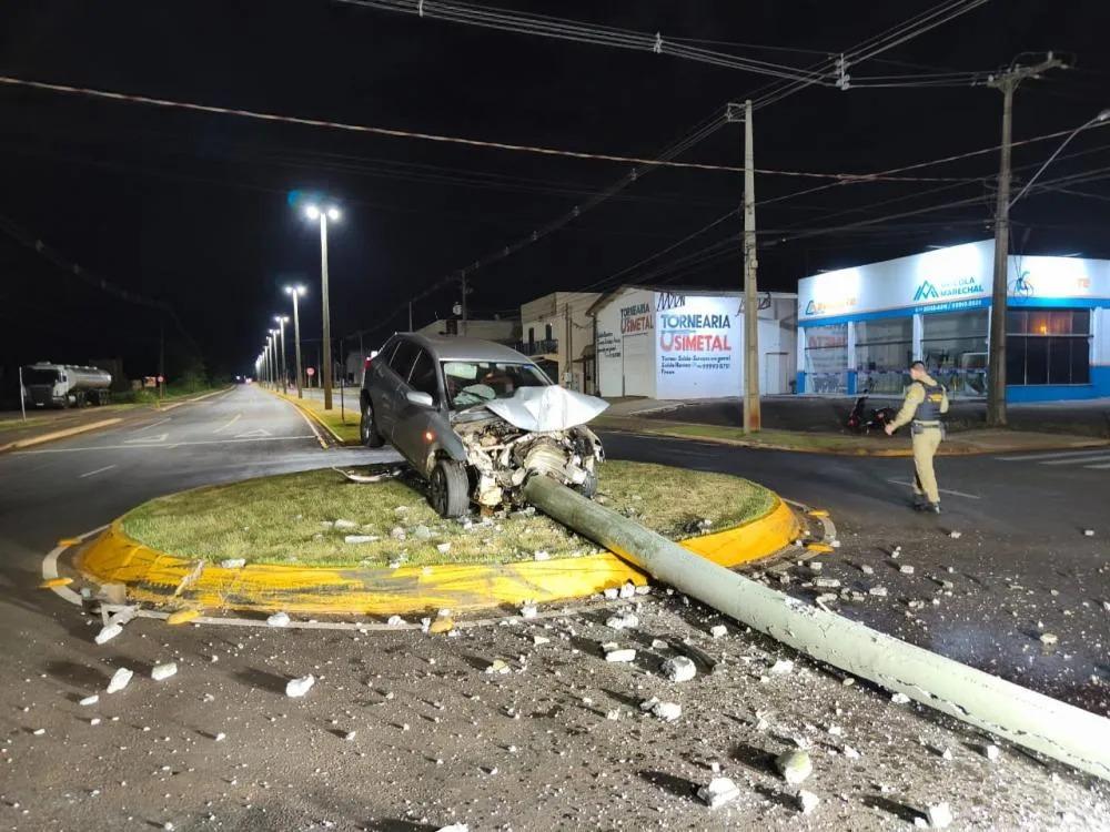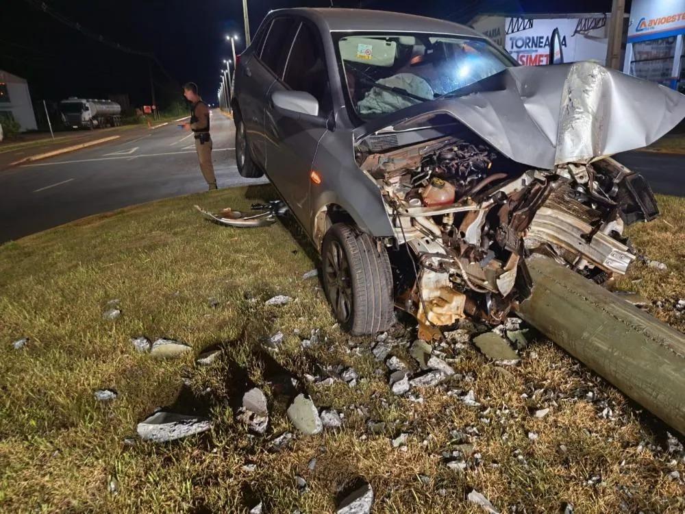 O acidente envolveu um Chevrolet Ônix, com placas do Brasil, que colidiu violentamente contra um poste de iluminação pública. Com o impacto, o poste foi derrubado e o veículo sofreu danos de grande proporção.