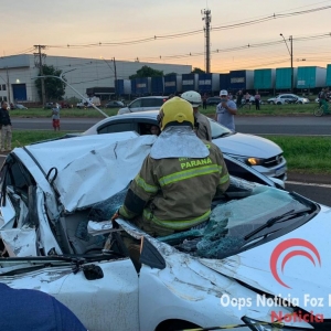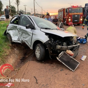 Ao chegar no local foi constatado que um veículo Ford Ka de cor prata estava vindo de Santa Terezinha de Itaipu sentindo Foz do Iguaçu, segundo informações foi fechado por um outro veículo, perdendo o controle, pulando o canteiro central, saltando com o carro e caindo na pista contrária.