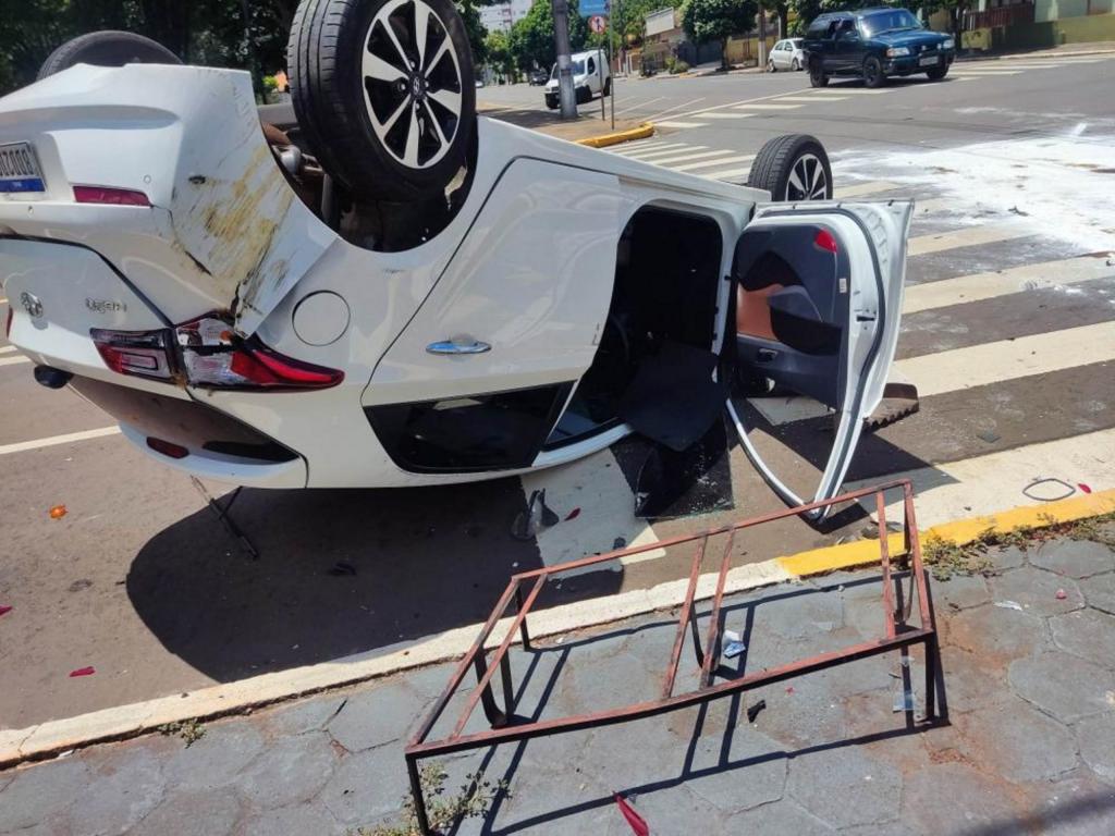 Com a batida, o HB20 capotou e ficou com as rodas para cima