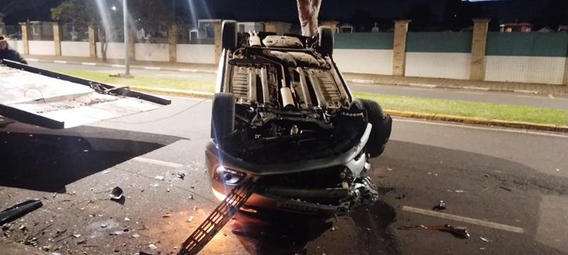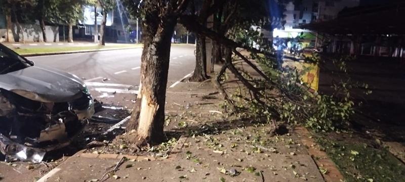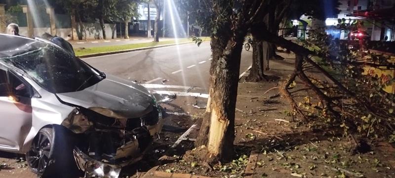 Um acidente impressionante foi registrado por volta das 2h da madrugada desta sexta-feira (11), na Avenida Maripá, região do bairro Vila Operária, em Toledo. Um automóvel Citroën com placas do Mercosul acabou capotando após atingir uma árvore no canteiro central da via.