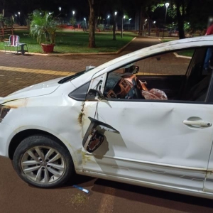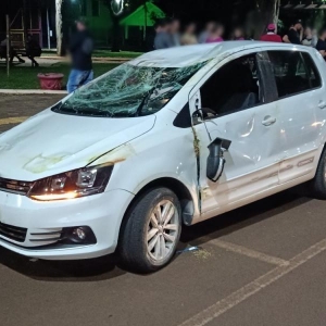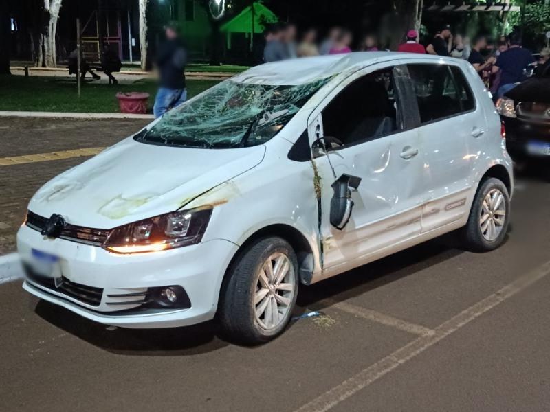 Um carro capotou após uma colisão na noite deste domingo (11), em Mercedes. O acidente aconteceu na Av. João XXIII, em frente a praça