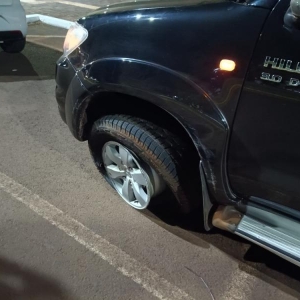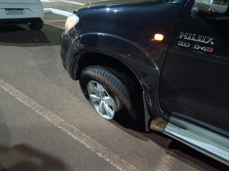 O carro acabou capotando após colidir na roda da Hilux.