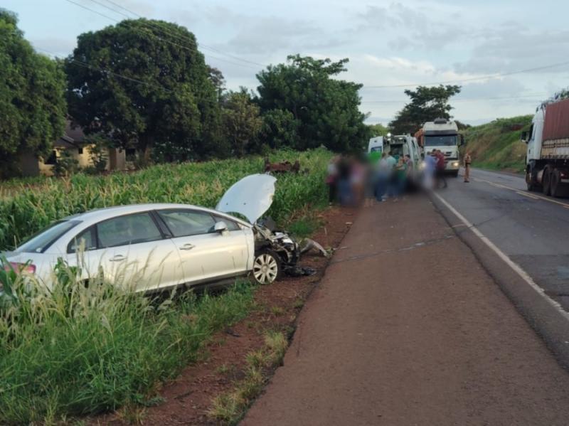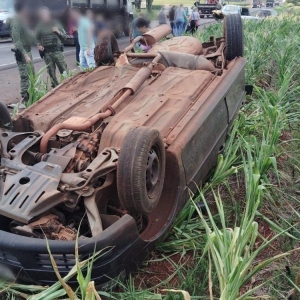 Um grave acidente de trânsito foi registrado no final da tarde de terça (09), na BR-163, em Mercedes. Um carro capotou após uma batida.