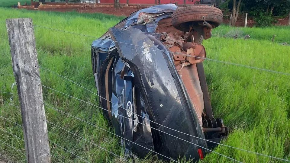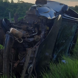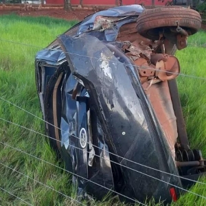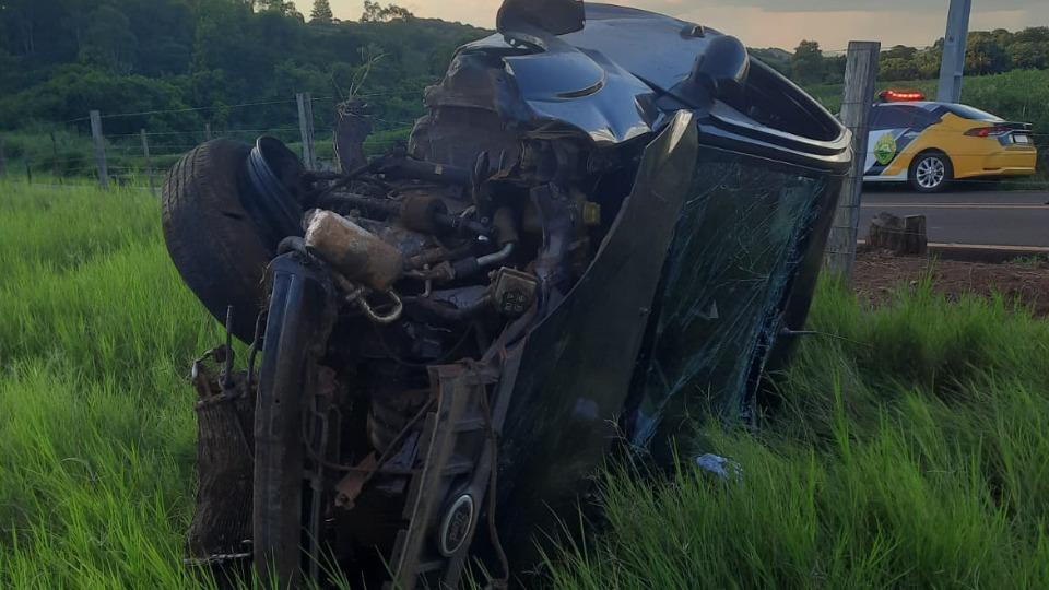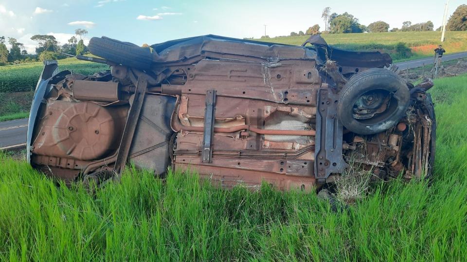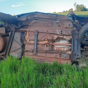 Capotamento na PR 590 deixou o motorista em estado grave, na tarde de domingo (12).