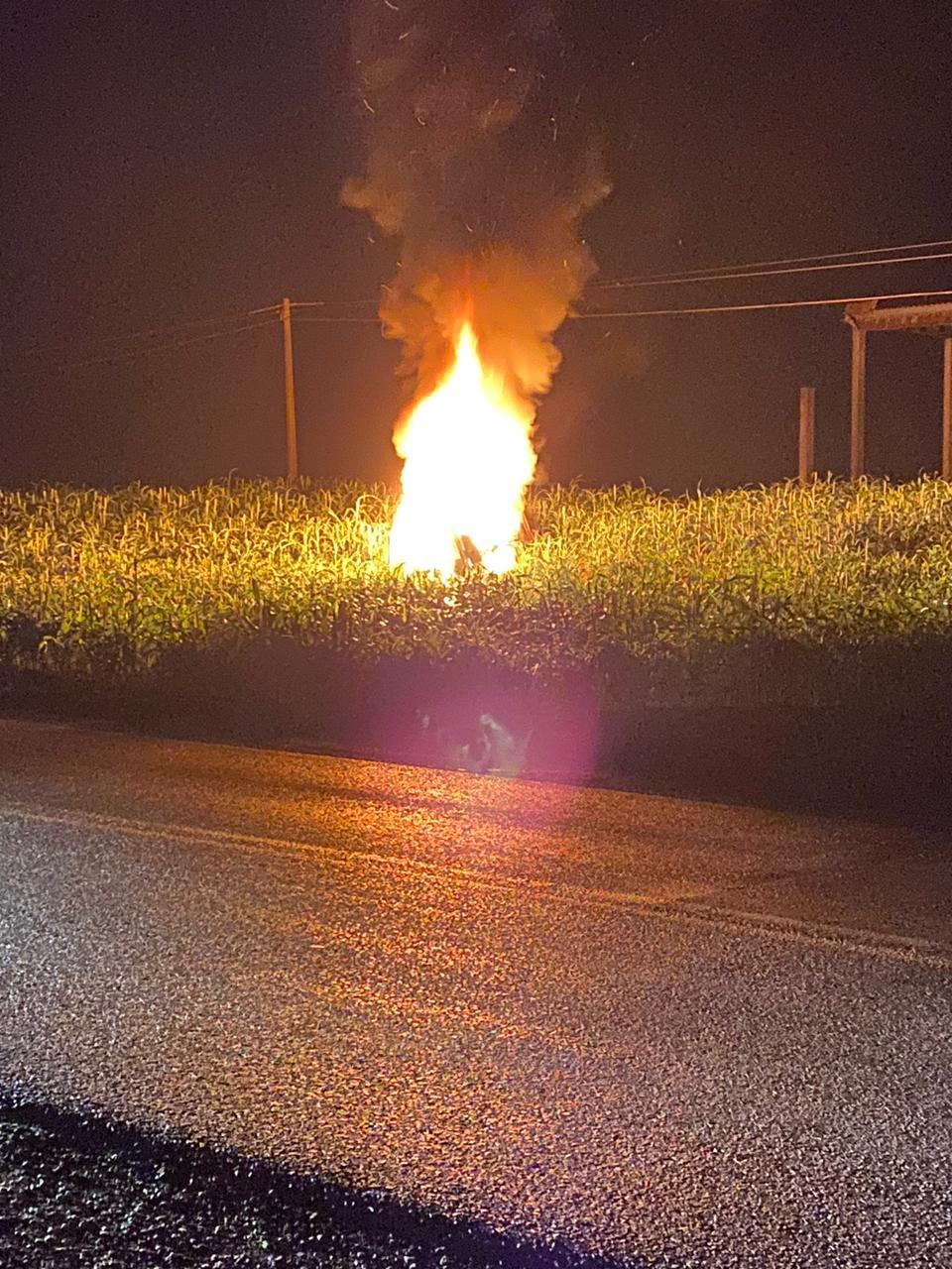 Um carro modelo Renault Logan capotou e depois pegou fogo na noite deste domingo (14), na rodovia PR 239, próximo ao trecho de saída para Toledo.