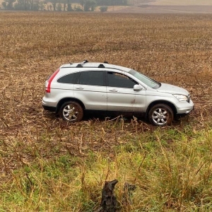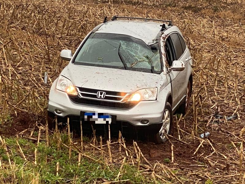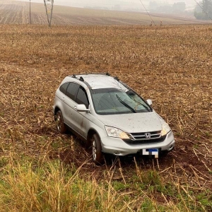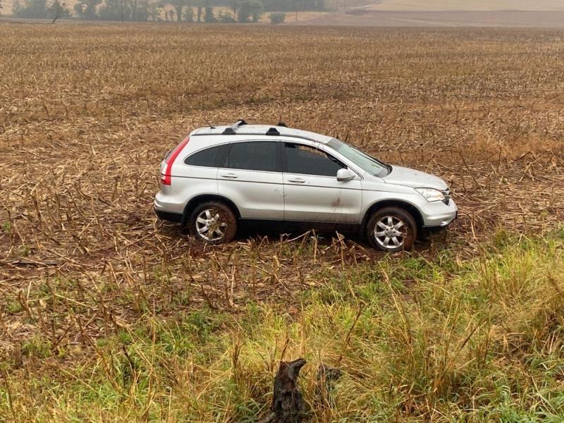 O acidente ocorreu por volta das 10h30min, próximo ao São Luiz. O veículo, com placa de Mercedes, parou em uma lavoura.