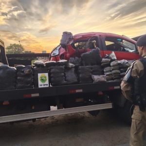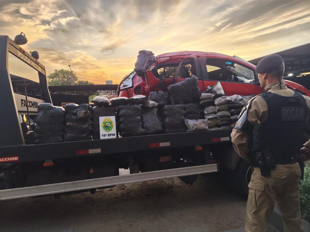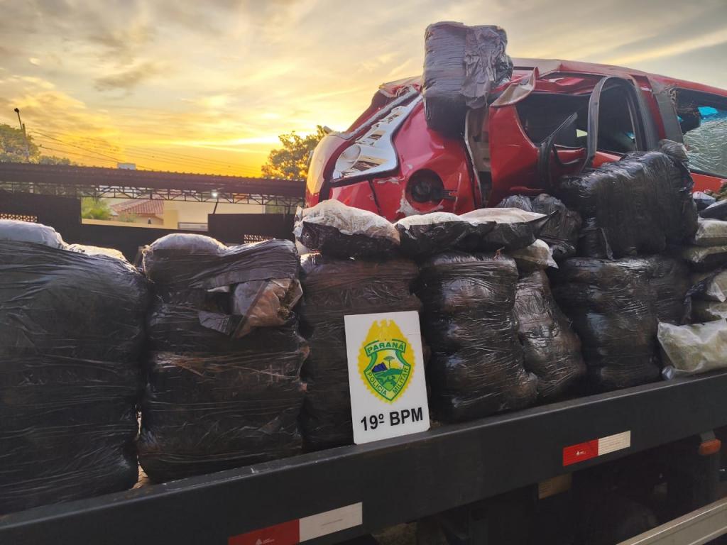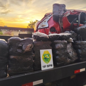 No interior do carro capotado não havia motorista, e também não foram localizados vestígios do condutor nas proximidades. Durante a vistoria, foram encontrados pacotes de maconha tipo “moruga” e vários fardos de tabletes espalhados pela vegetação ao lado da rodovia. A conferência totalizou 134 quilos e 75 gramas da droga.