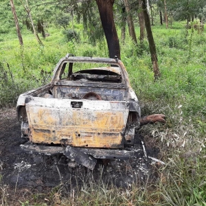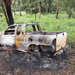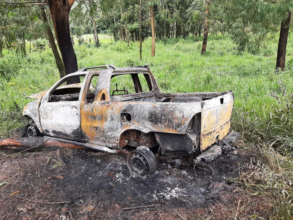 Um veículo carbonizado foi encontrado nesta sexta (22) pela Polícia Militar de Guarapuava.