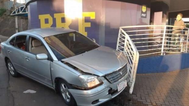 Um motorista paraguaio de 24 anos, bateu o carro na grade de proteção do posto de fiscalização da PRF (Polícia Rodoviária Federal) na aduana da Ponte da Amizade em Foz do Iguaçu na manhã de quinta-feira (20).