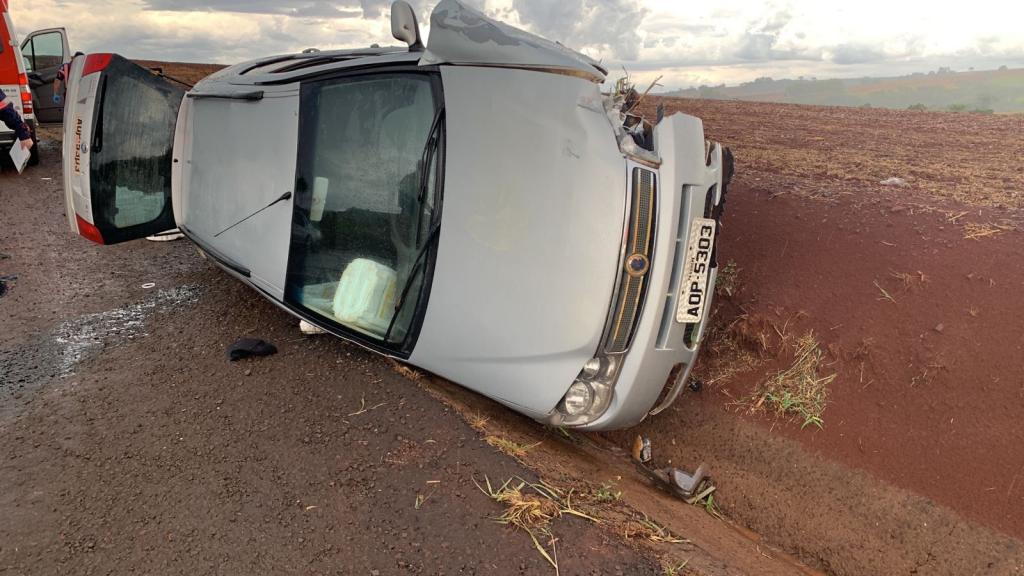 Carro carregado de agrotóxico foi abandonado depois de se envolver em acidente na tarde desta sexta-feira (25), no km 580 da PR 239 em Assis Chateaubriand.