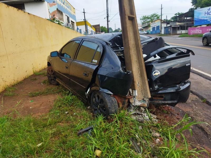Carro colide contra poste em Guaíra