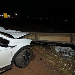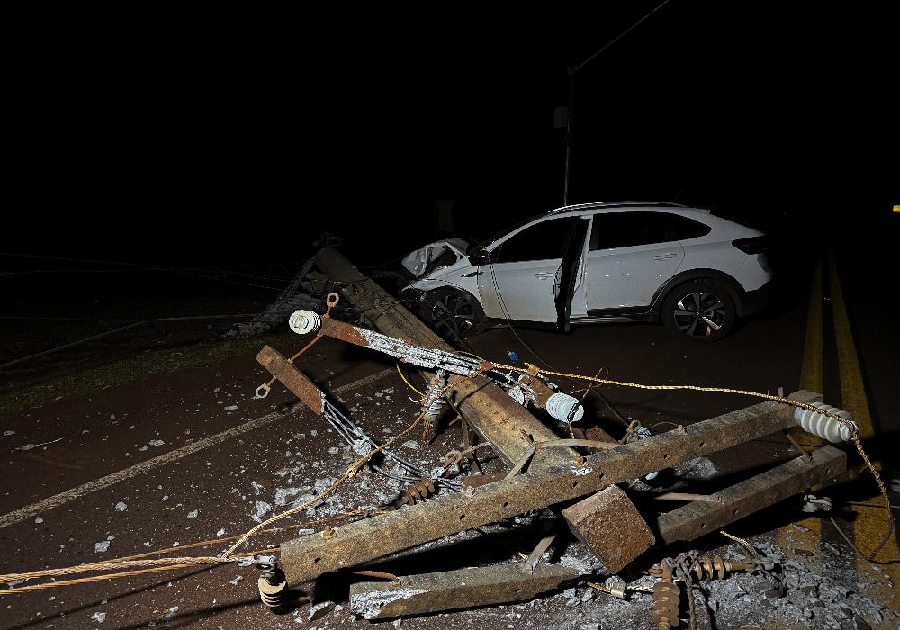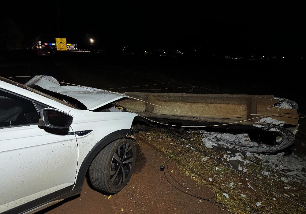 Segundo informações apuradas, a condutora de 23 anos seguia com o Volkswagen Nivus de Quatro Pontes perdeu o controle da direção e atingiu dois postes — sendo um deles um superposte.