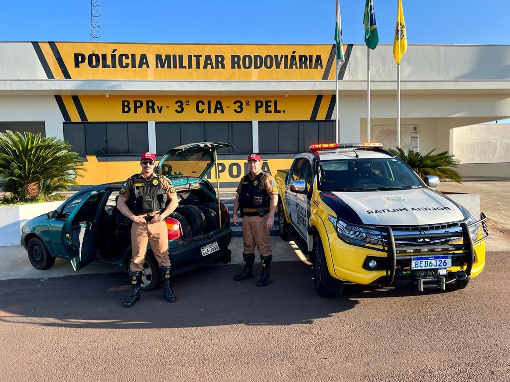 Após a elaboração da documentação no Posto Policial, o condutor foi qualificado e o veículo e os pneus encaminhados para a Receita Federal de Guaíra.