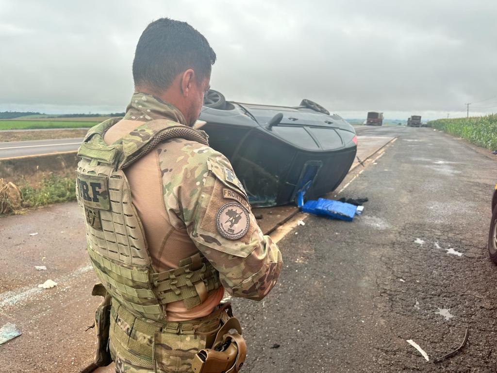 Após cerca de 1 quilômetro em fuga, o motorista perdeu o controle do veículo e tombou sobre a pista. Os próprios policiais prestaram o socorro inicial até a chegada do Siate.