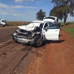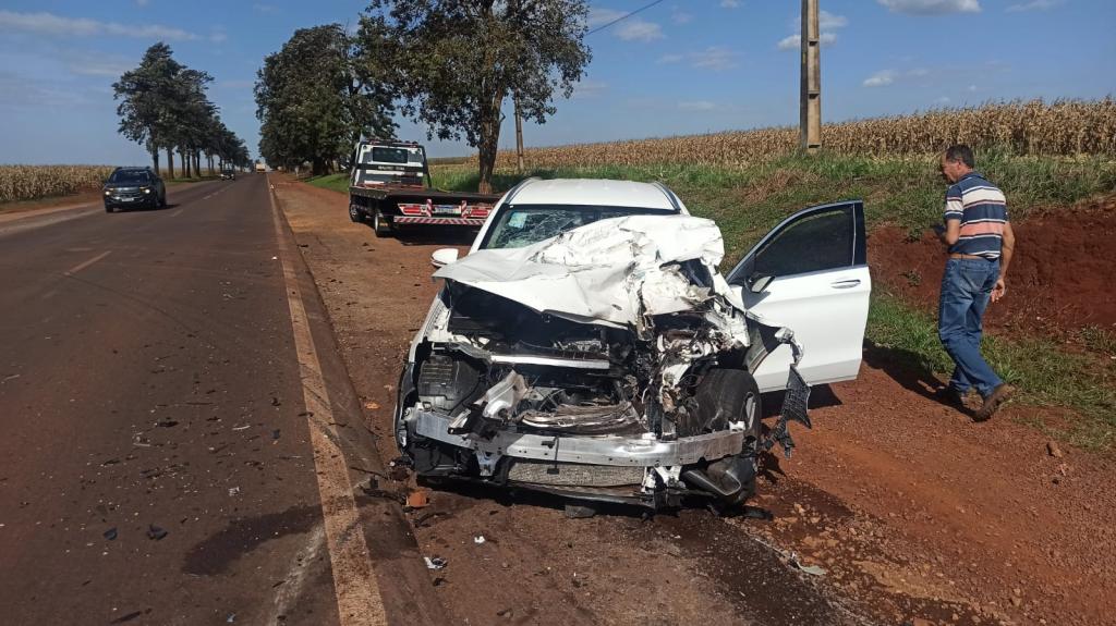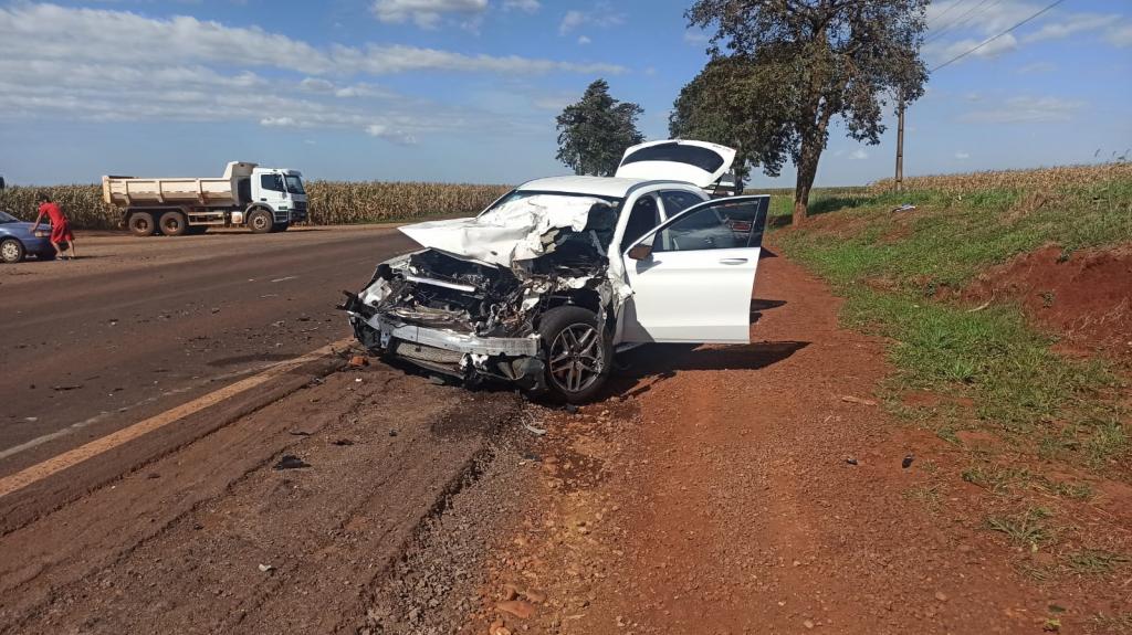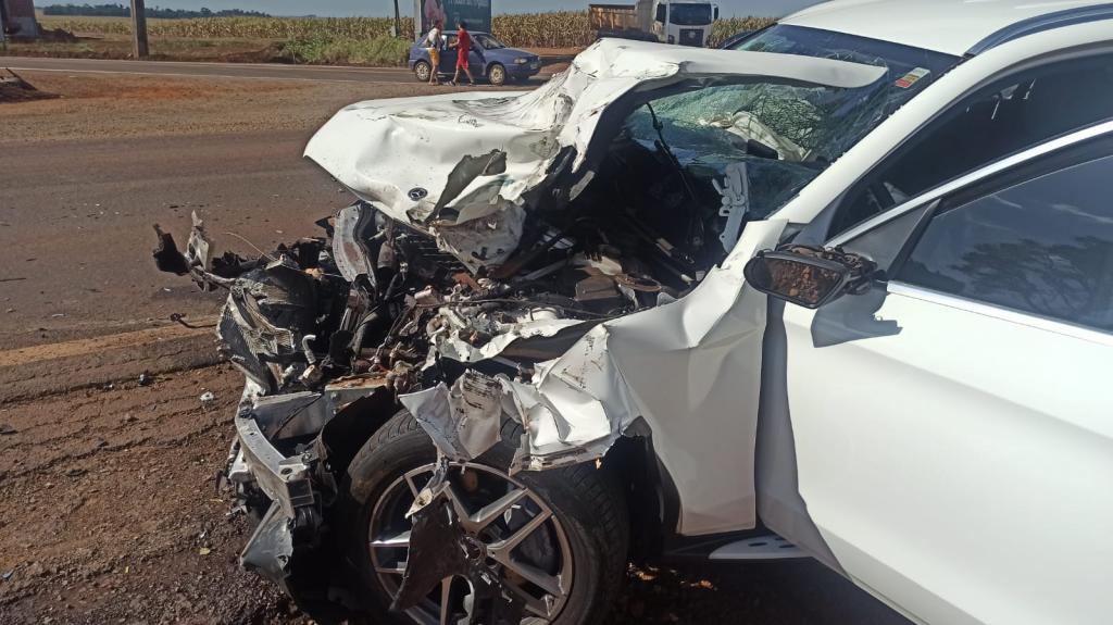 Uma colisão traseira entre um carro e um caminhão aconteceu no início da tarde desta terça-feira na rodovia 182 aproximadamente 1 km após o trevo de Vila Candeias no sentido a Palotina e envolveu um caminhão Mercedes Benz e um automóvel também da marca Mercedes Benz modelo GLC com placas Mercosul.