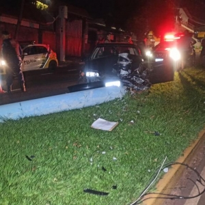 O Vectra com placas de Toledo colidiu contra dois postes na avenida Senador Atílio Fontana, área central de Toledo na madrugada deste domingo, por volta da 01h00.