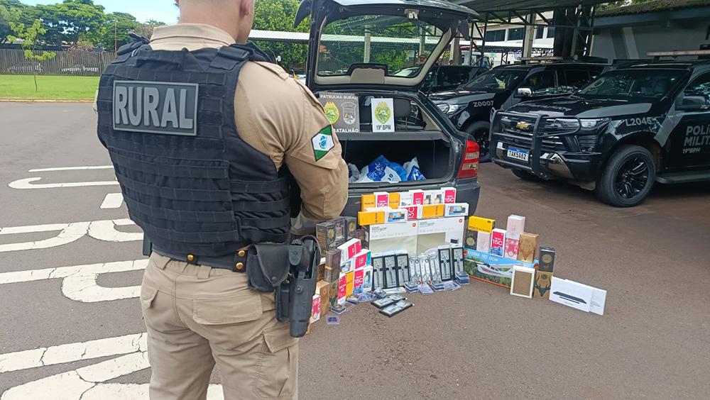 Diante da situação, o veículo e toda a carga foram apreendidos e encaminhados à Receita Federal de Cascavel para os procedimentos legais. As quatro pessoas que estavam no automóvel foram liberadas após o encaminhamento da mercadoria.