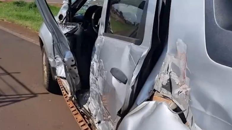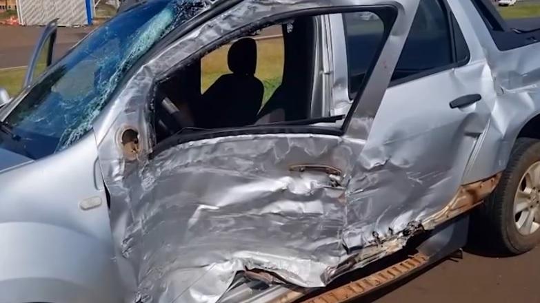 Informações dão conta de que o veículo, uma Renault Oroch, estava parado no acostamento e, ao tentar acessar a rodovia, acabou sendo atingido lateralmente por um caminhão Mercedes-Benz Atego, que seguia pela pista.