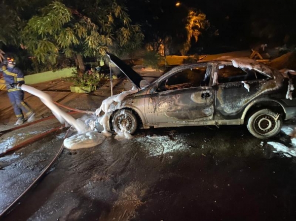 Carro é destruído por incêndio durante a madrugada em Guaíra