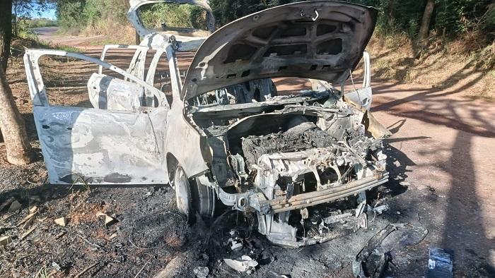 Um veículo foi completamente destruído por um incêndio no início da tarde desta quarta-feira (11), na rodovia PR-317, em Toledo, nas proximidades da pedreira municipal. O Corpo de Bombeiros foi acionado por volta das 14h para atender à ocorrência.