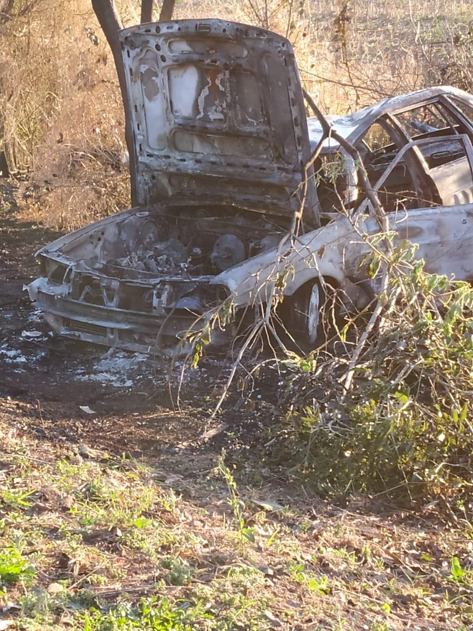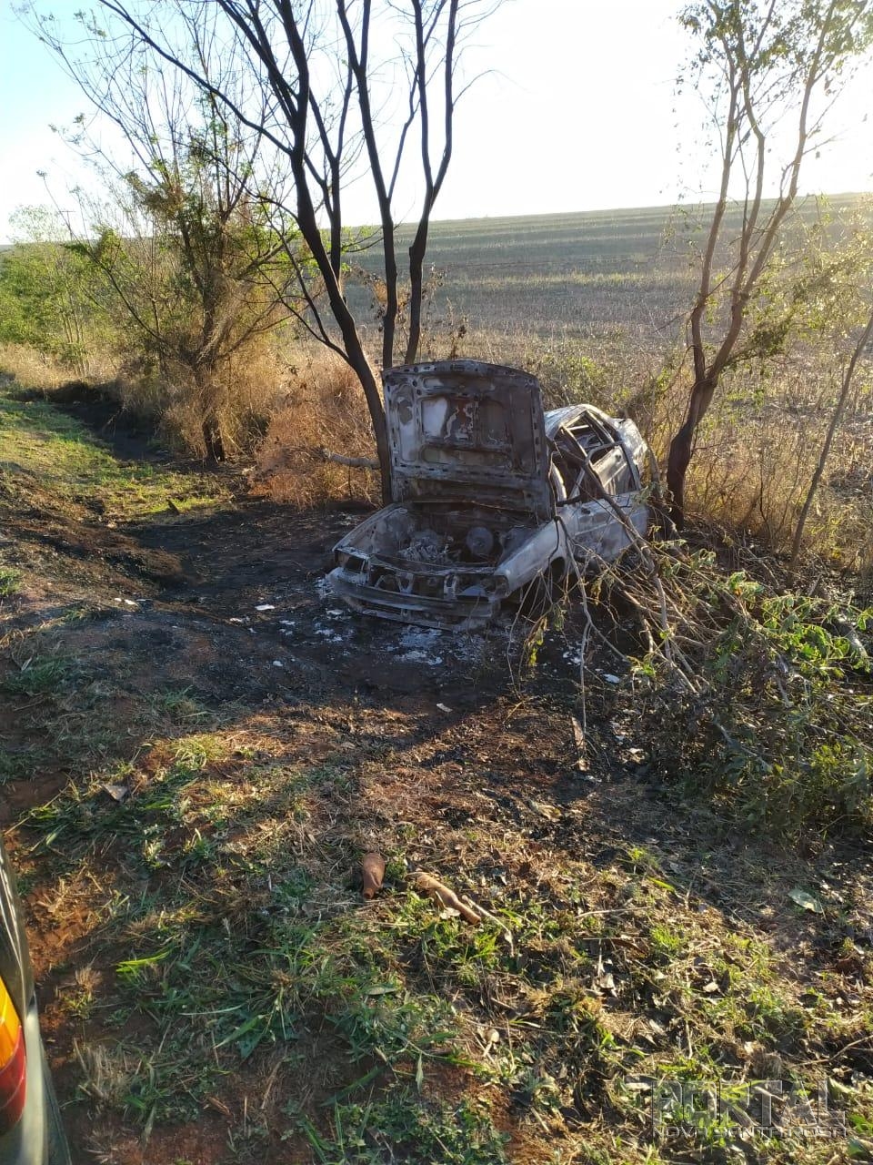 O veículo estava com indícios que capotou e na sequência pegou fogo.