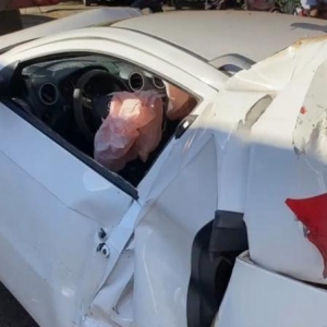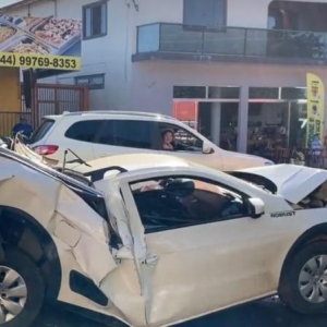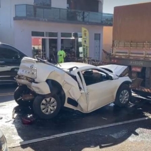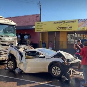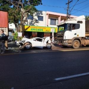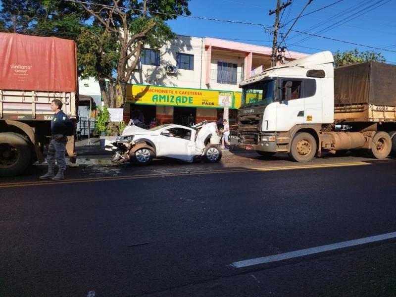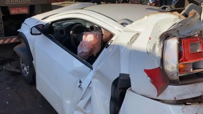 Um veículo ficou destruído em um acidente registrado na Avenida Almirante Tamandaré (BR-163), em Guaíra.