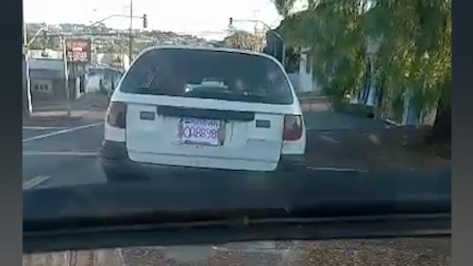 Uma imagem no trânsito de Cascavel mostrou um carro trafegando com placa feita de papel sulfite pelas ruas do município.