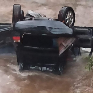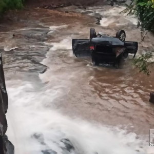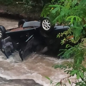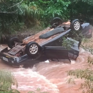 Segundo o que informou o motorista, ele conseguiu sair do veículo, mas foi arrastado pela correnteza para uns 40 metros abaixo aí conseguiu voltar e tirar a sua filha que estava dentro do carro se segurando no banco.