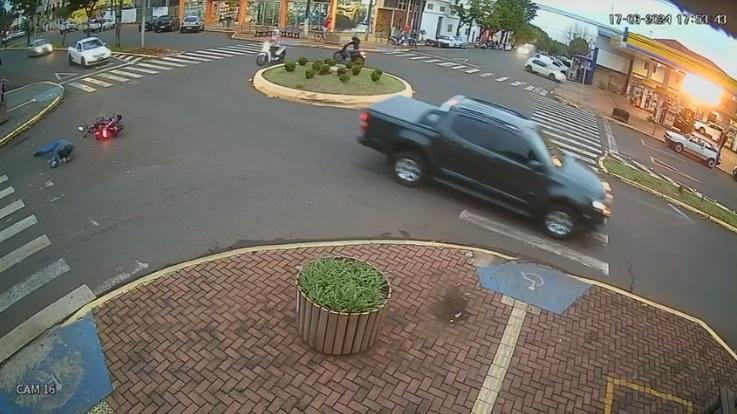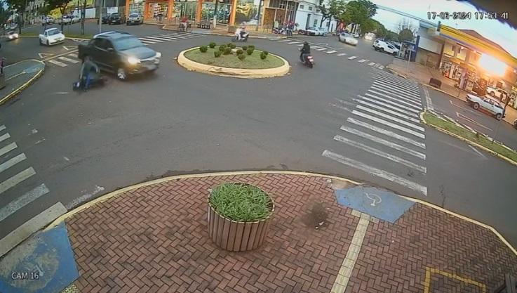 Mais um acidente de trânsito foi registrado na rotatória que faz cruzamento da Avenida Rio Grande do Sul com a Rua Mem de Sá, centro de Marechal Cândido Rondon. O acidente aconteceu próximo das 18 horas de segunda-feira (17).