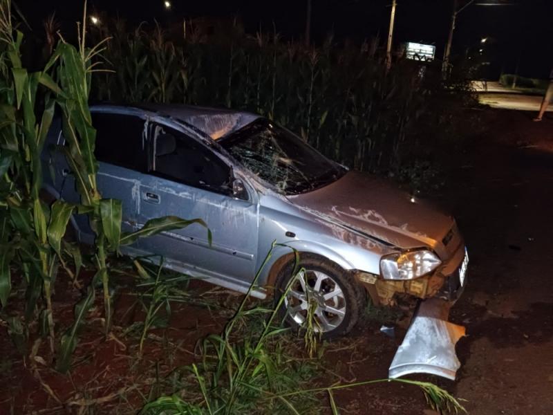 O carro parou às margens da pista, dentro de um milharal. O Astra, de Mercedes, ficou destruído.