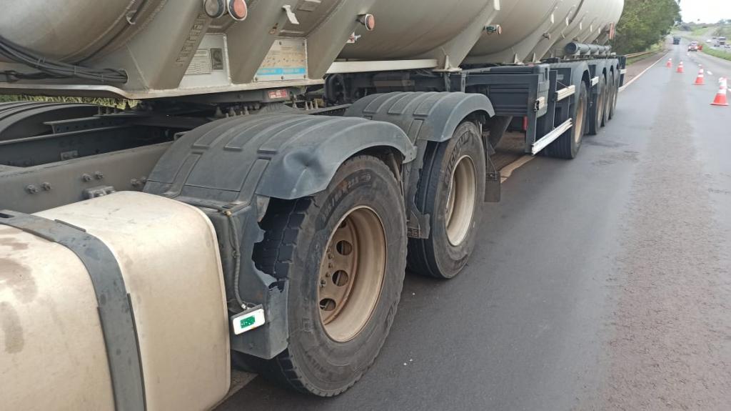A colisão envolveu uma carreta volvo com placas Mercosul de transporte de combustível e um veículo Honda Civic com placas de Toledo conduzido por uma mulher de 64 anos.