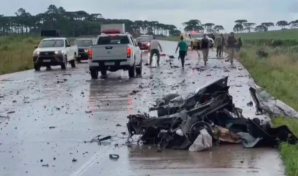 De acordo com informações do Batalhão de Polícia Militar Rodoviária (BPRv), o automóvel aquaplanou durante uma ultrapassagem em trecho da rodovia e acabou colidindo frontalmente com o caminhão. Com a força do impacto, o carro ficou completamente destruído, sendo partido ao meio.
