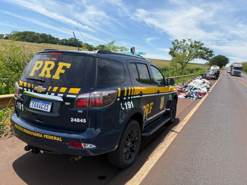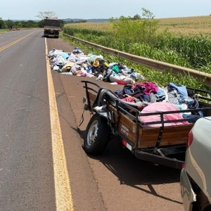 A PRF também esteve presente, controlando o trânsito e registrou a ocorrência. A carga de roupas que o reboque do Corrola transportava ficou espalhada às margens da BR-163.