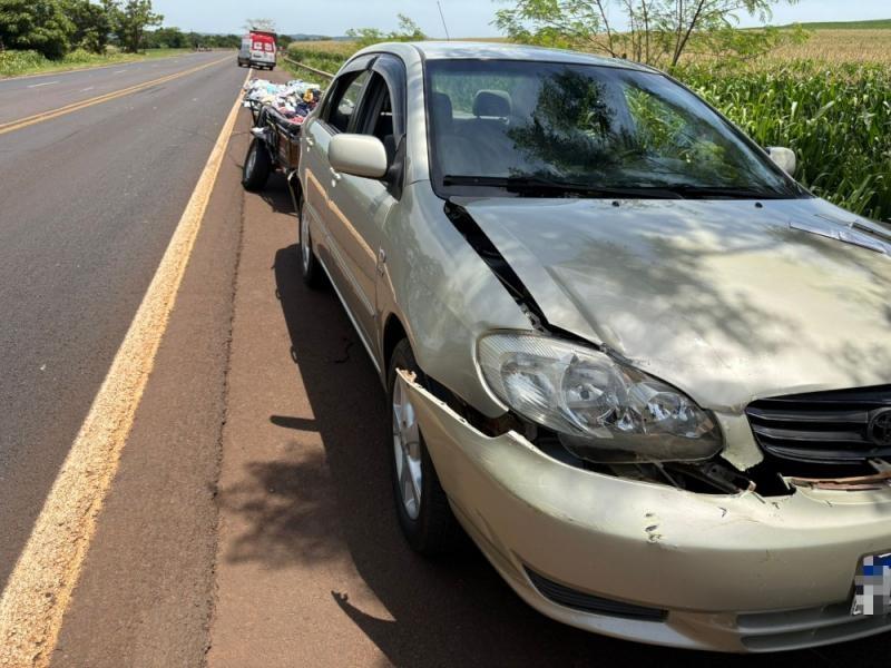 Ambos veículos seguiam em direção à Guaíra, quando o condutor do Corolla perdeu o controle do carro e do reboque, rodando na pista