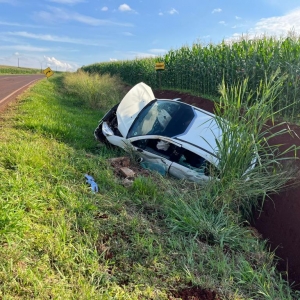 O condutor seguia sentido a Marechal Rondon quando saiu da pista e capotou parando em um barranco as margens da rodovia, os dois airbags abriram e o carro ficou destruído.