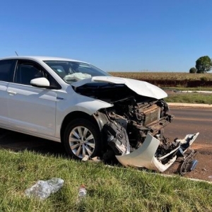 Na tarde desta terça-feira (02), foi registrado um acidente de trânsito no trevo em frente à fábrica de rações, na entrada da cidade de Entre Rios do Oeste.