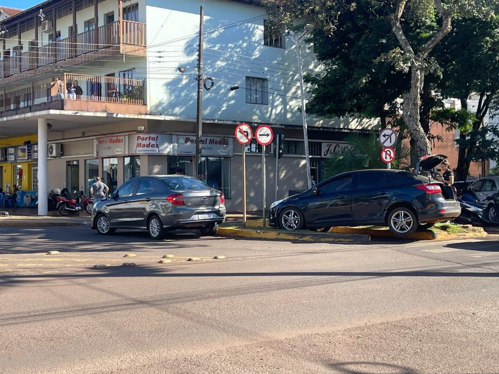 Um acidente de trânsito foi registrado, nesta sexta-feira (02), no cruzamento da Avenida Maripá com a Rua Santa Catarina, no centro de Marechal Rondon.