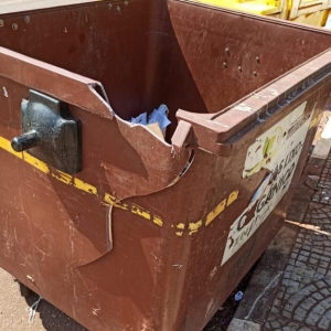 Após a colisão, o Hyundai atingiu um container de lixo e avançou sobre a calçada, parando sobre ela.