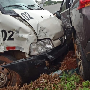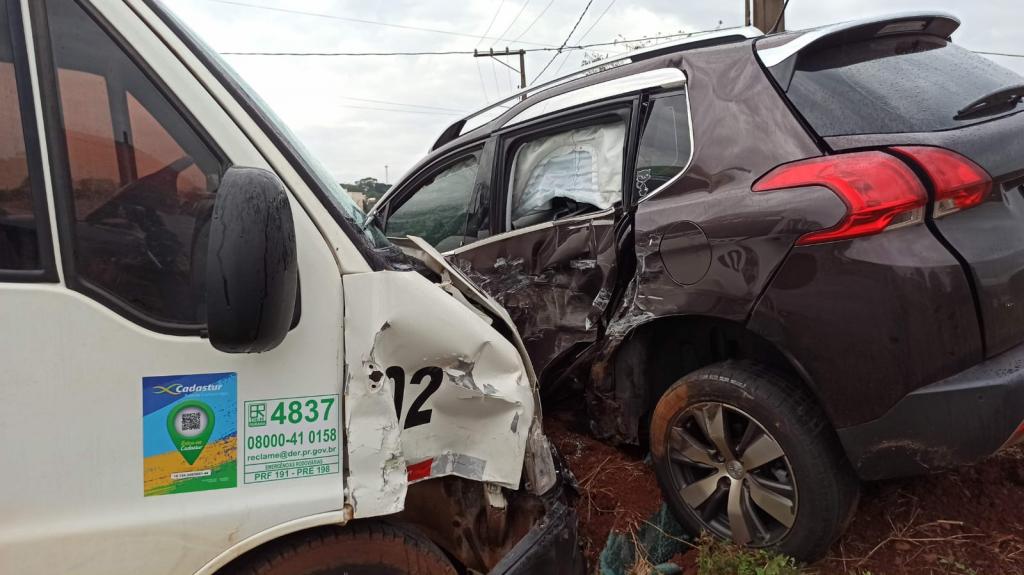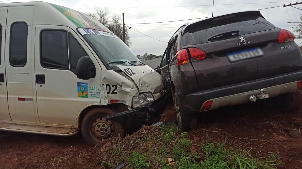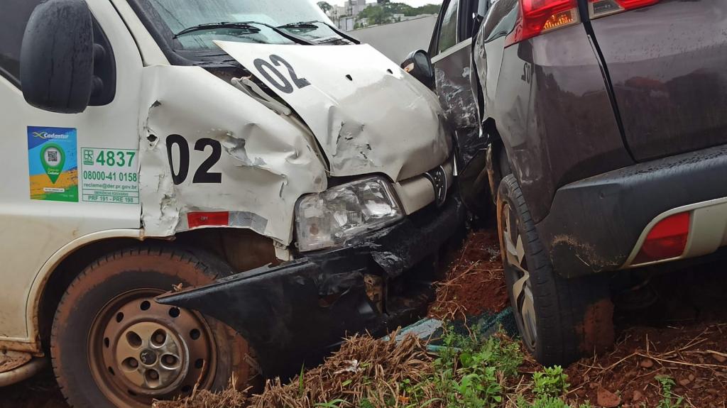 Os danos foram de regular monta na van e grande monta na lateral esquerda do automóvel a Polícia Rodoviária Estadual atendeu a ocorrência.
