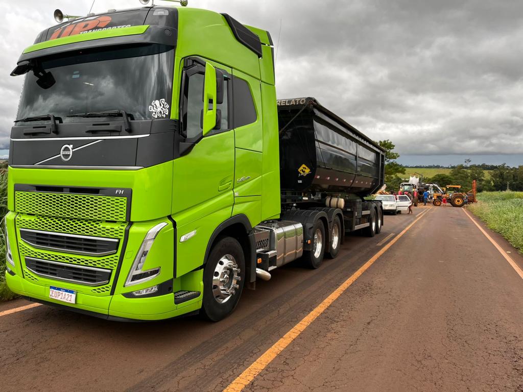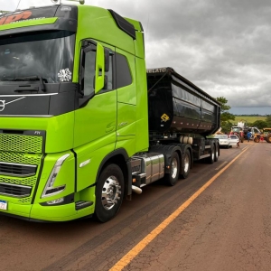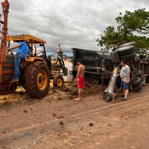 O condutor disse a reportagem que carregou em Nova Santa Rosa e seguia para Santa Catarina, na curva dos Wagner como é conhecido o ponto a carreta saiu da pista e tombou.