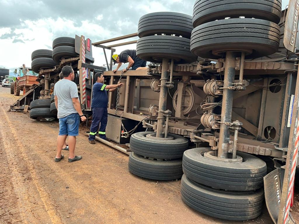 O guincho de Marechal Rondon está neste momento realizando o destombamento da carreta, o local do acidente está com trânsito de meia pista, cones sinalizam as proximidades, a Polícia Rodoviária Estadual continua auxiliando o trânsito que é movimentando neste horário.