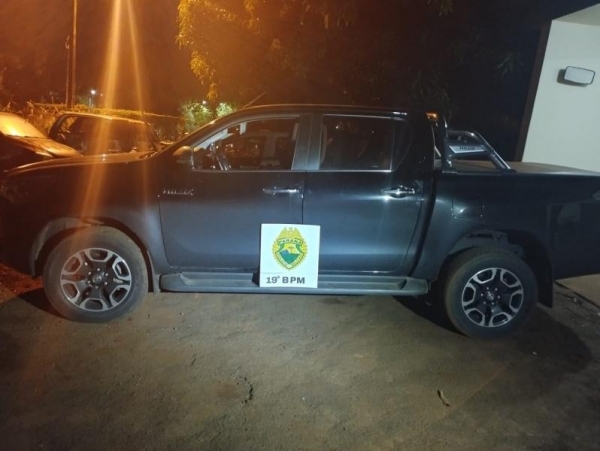 Uma caminhonete roubada foi recuperada pela Polícia Militar na madrugada desta quarta-feira (24), em Guaíra. Dois suspeitos foram abordados pela equipe da PM, que patrulhava a região, mas um deles conseguiu fugir e o outro foi preso em flagrante.